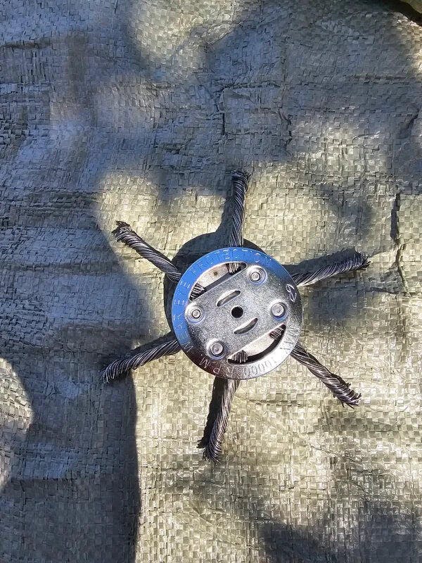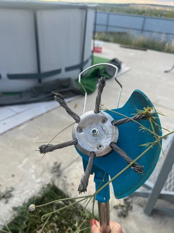 🇵🇹 A cabeça do cortador de relva possui 6 lâminas em aço inoxidável